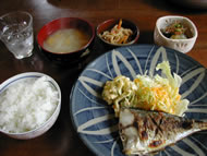 ランチ(AM11:00〜PM2:00)は、魚をメインにサラダ、味噌汁といった内容でバランスが良くとってもヘルシー。さらにドリンク、ごはんのお替りが付いて750円とお得です。