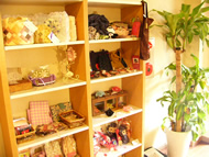 和楽mamaには、玄関スペース、カウンター後ろにレンタルボックスを設置し、手芸他様々な作品の展示販売をしています。レンタルボックスを借りてみたいなと思う方、お気軽にお尋ねください。
