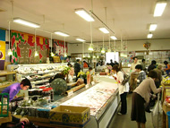 ひっきりなしにお客様が訪れる超人気店! 魚介類を中心に、肉類、野菜、果物、生花などが所狭しと並びます。どれも生産者さんから直接持ち込まれた新鮮なものばかりです。 魚介類はその場で下ごしらえもしてくれます。 そのほかに、お弁当などのお惣菜やお餅・お饅頭、お味噌・醤油・お米・干し椎茸などの加工食品まで何でも揃っています。 地元の方のお買い物はもちろん、ちょっとしたお土産にもなりますヨ!