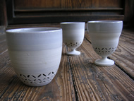 人気の透かしシリーズ。器の底が二重になっており、模様を彫っています