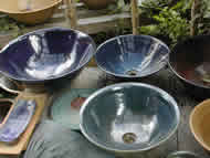 洗面ボウルを中心に、食器や欄鉢、ランプシェードなどの照明、ちょっと変わったオブジェなどを作っています。洗面ボウルはどうしても工業製品が主流になりますが、「手作り洗面ボウル」はひと味違った魅力あるインテリアとして、住宅の新築や改装、焼き鳥屋さんなどの飲食店から多数の依頼がくる人気商品です。