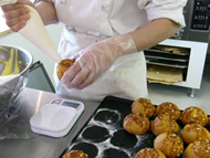 あられ糖をのせたサクサクシュー。注文をうけてから作ります