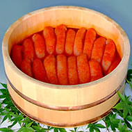天然果汁をベースに日本酒、みりん、羅臼昆布、厳選した4種の唐辛子を使った、当店自慢の松翁庵特性調味液に3日間漬け込んで熟成させた辛子めんたい子です。