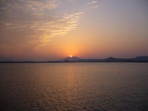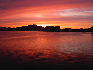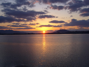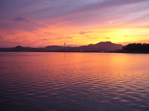 | 今津干潟は、福岡湾西部の瑞梅寺川河口に広がる干潟です。これまでに、渡り鳥の飛来地として300種を超える野鳥が観察されていて、とりわけ、絶滅危惧種クロツラヘラサギの定期的な越冬地として全国的に知られています。又、”生きた化石”といわれるカブトガニなど、たくさんの生き物の住処として、重要湿地500選に選ばれています。 これらの夕陽写真は、すべて「シーフード&ステーキ いし松」さんから今津干潟を撮影したものです。 |