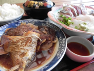 あらだき(魚周・カンパチ等あら)・さしみ(糸島産の地魚)・味噌汁・ごはん