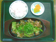 ギョウザ・7個(300円)、ホルモン鉄板(750円)、やきぶた(370円)、豚角煮(450円)、野菜炒め(500円) |